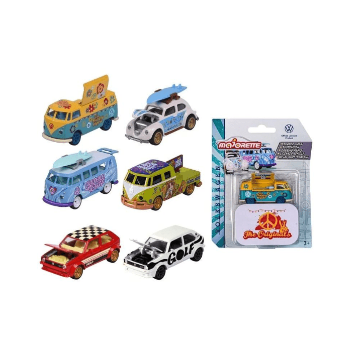 MAJORETTE VW The Originals Deluxe Cars không chỉ là món đồ chơi mà còn là tác phẩm sưu tầm dành cho người đam mê xe hơi. Từng đường nét đều thể hiện tinh thần sáng tạo của thương hiệu Majorette, mang đến sự hòa quyện giữa phong cách cổ điển và hiện đại. Đây là lựa chọn hoàn hảo để trưng bày tại bàn làm việc, tủ kính hoặc làm quà tặng cho những ai yêu thích xe Volkswagen và dòng mô hình châu Âu cao cấp.