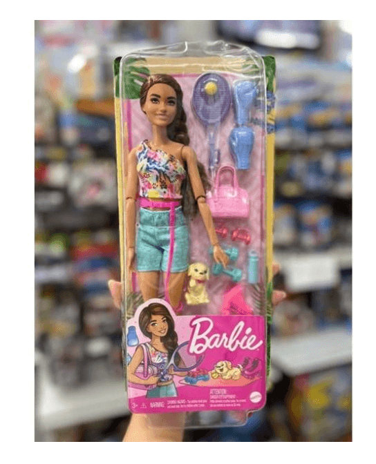 Bộ sản phẩm Mattel Barbie Wellness Doll đi kèm nhiều phụ kiện thể thao thú vị: găng boxing, tạ tay, giày patin, bộ vợt tennis, túi tập gym và chai nước. Đặc biệt, Barbie còn có chú cún cưng nhỏ xinh cùng dây dắt màu hồng – người bạn đồng hành đáng yêu giúp các bé học cách yêu thương và chăm sóc động vật.